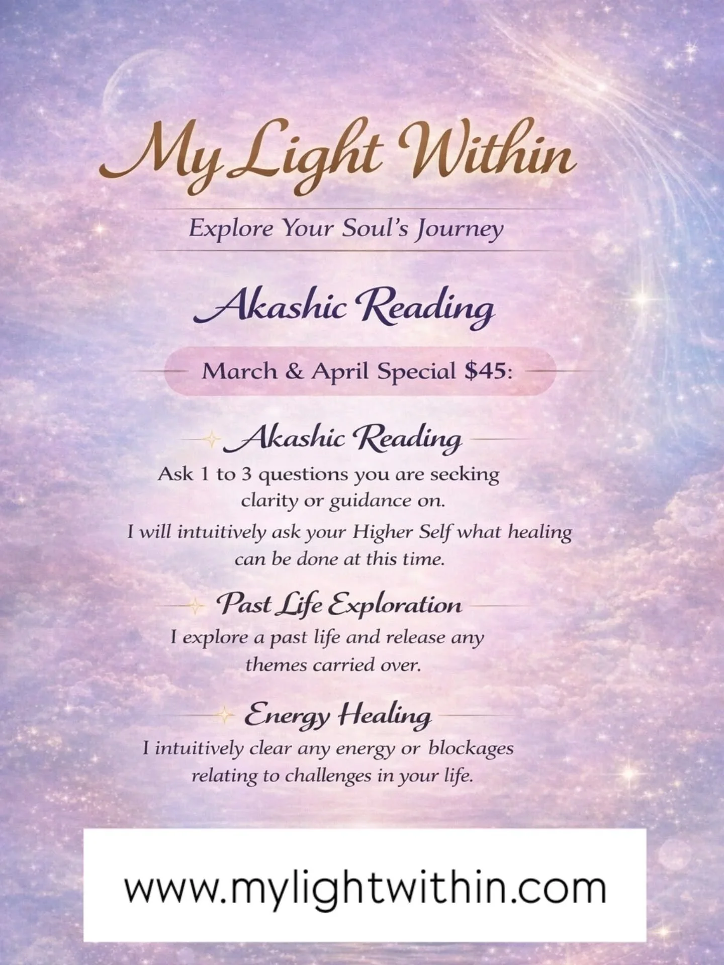 C) Energy Healing - If you have a theme, illness, or situation you want more information on - your Higher Self will share a message for you. I will do the energy work needed to clear.